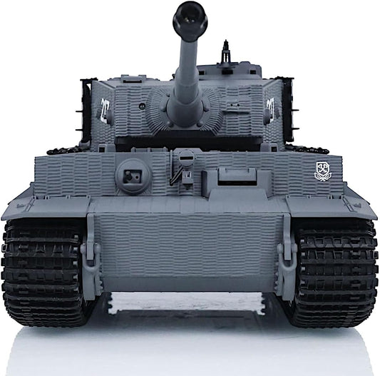 German Tiger I Heavy Tank, 1/24 Infrared IR Combat Panzer RTR 2.4Ghz RC Armored Vehicle, Taigen 3841-11-M Standard Paintless Middle Version, Sound Light Recoil WWII Military Model, Gray