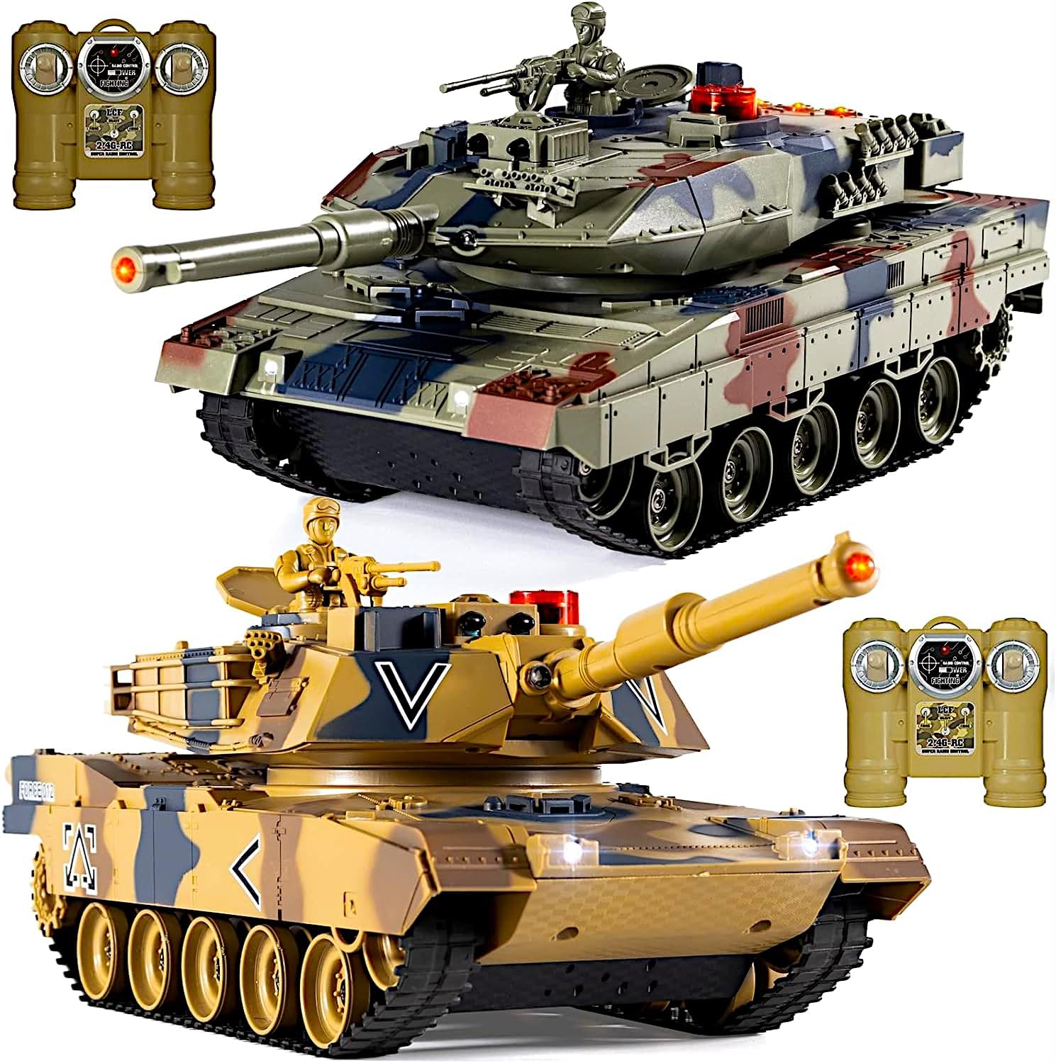 2-set IR-Combat Tanks, US M1A2 Abrams vs. German Leopard 2A6, 1/24 RC Armored Fighting Vehicle, 2.4Ghz Infrared-battle Demo-Play, Smoke Sound Light Recoil Toy, Kids Gift Army MBT Military Model