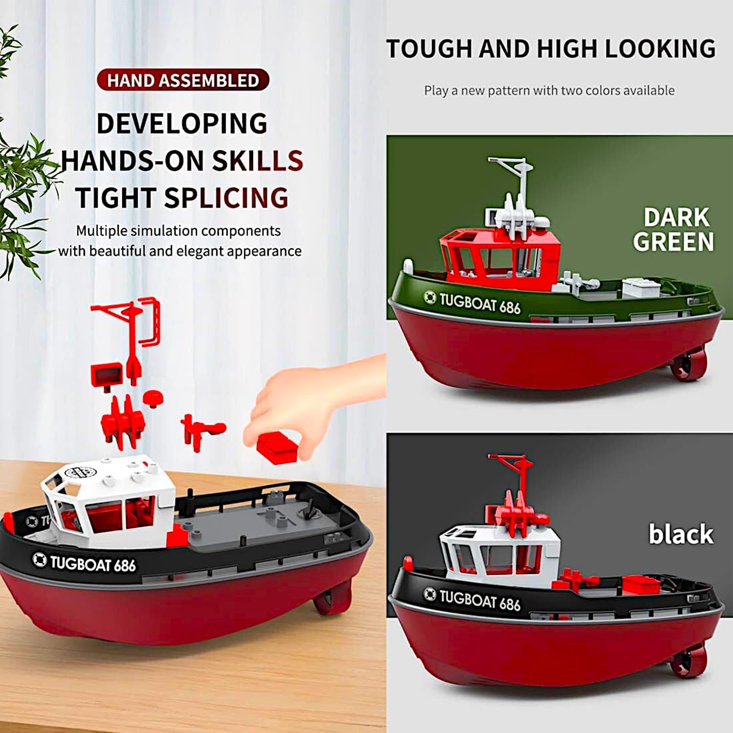 Cartoon Tugboat RC Boat, 1/72 Harbor Work Ship, Kids Lake Pond Toy Yacht, 2.4Ghz Radio Remote Control 15kmph Speed Pool Racer, Adults Water Fun Gifts, LED Night Sailing Cruise, Black-Red
