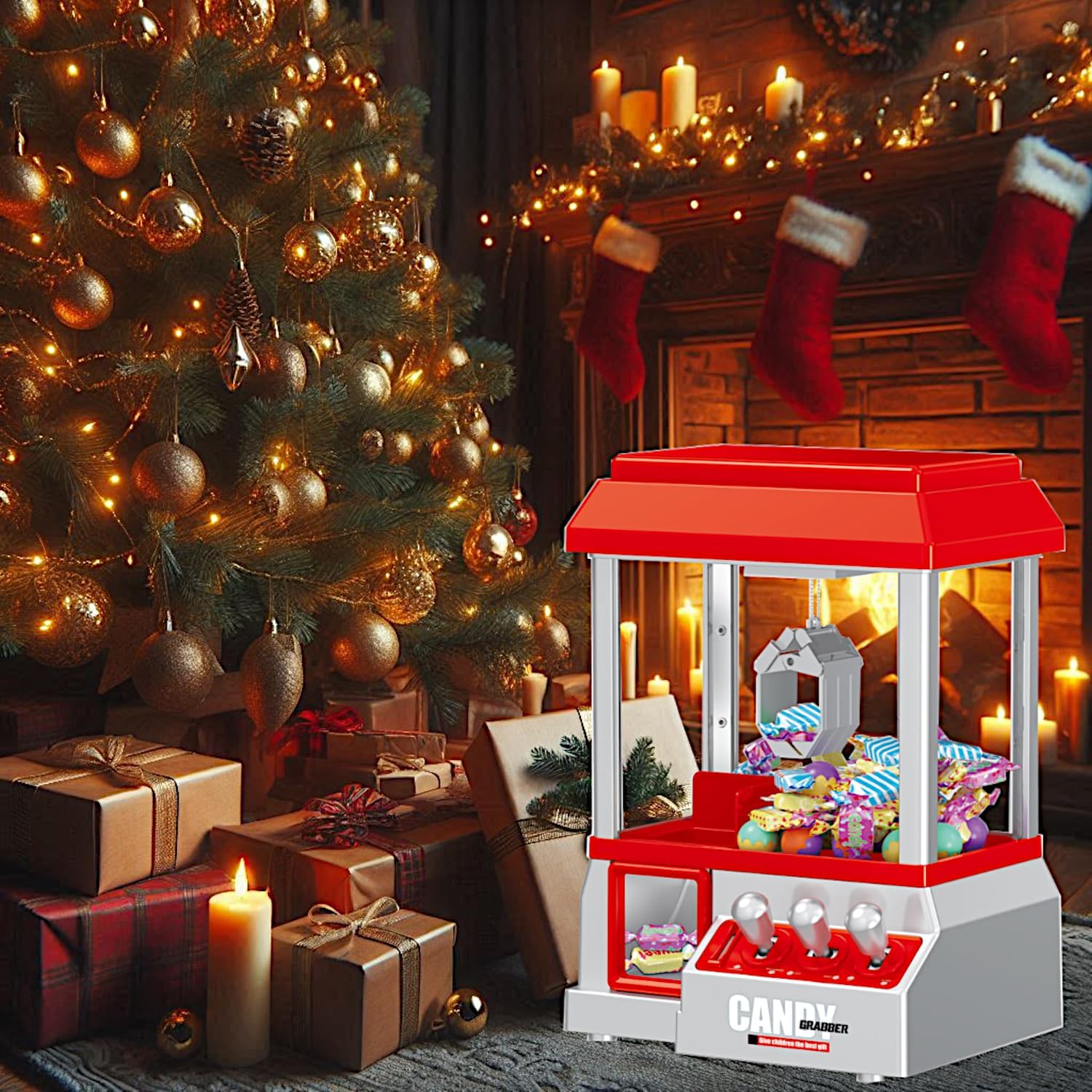 Classic Claw Machine Arcade Grabber, Plushies Gift Candy Prize Figures Capsules Dispenser, Adjustable Game Music Token Slot Play, Battery USB Power Treats Crane, Kids Boys Girls Vending Toy