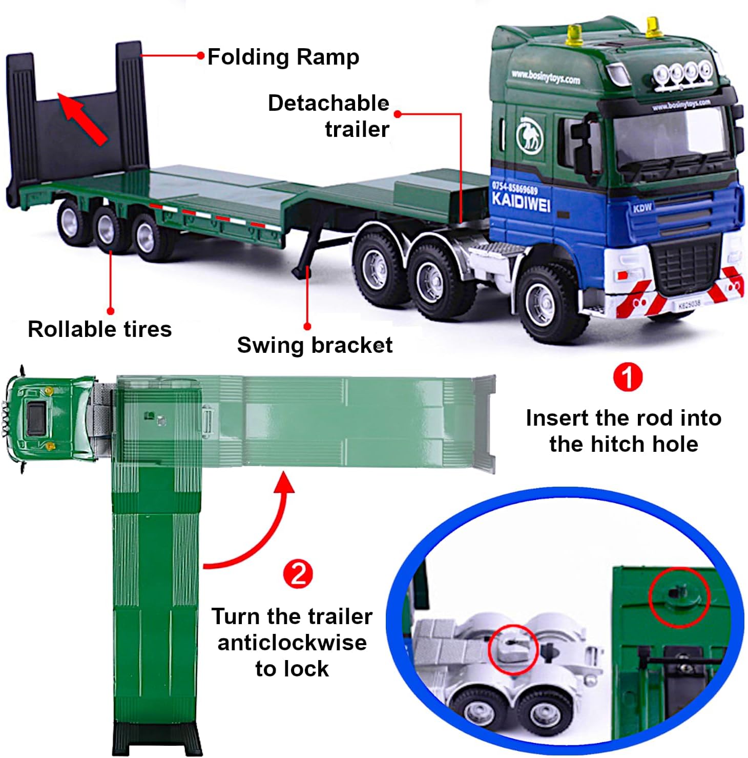 - Die-cast 2pcs construction vehicle playset, including 1/50 scale crawler excavator, 1/50 scale semi-tractor with trailer
