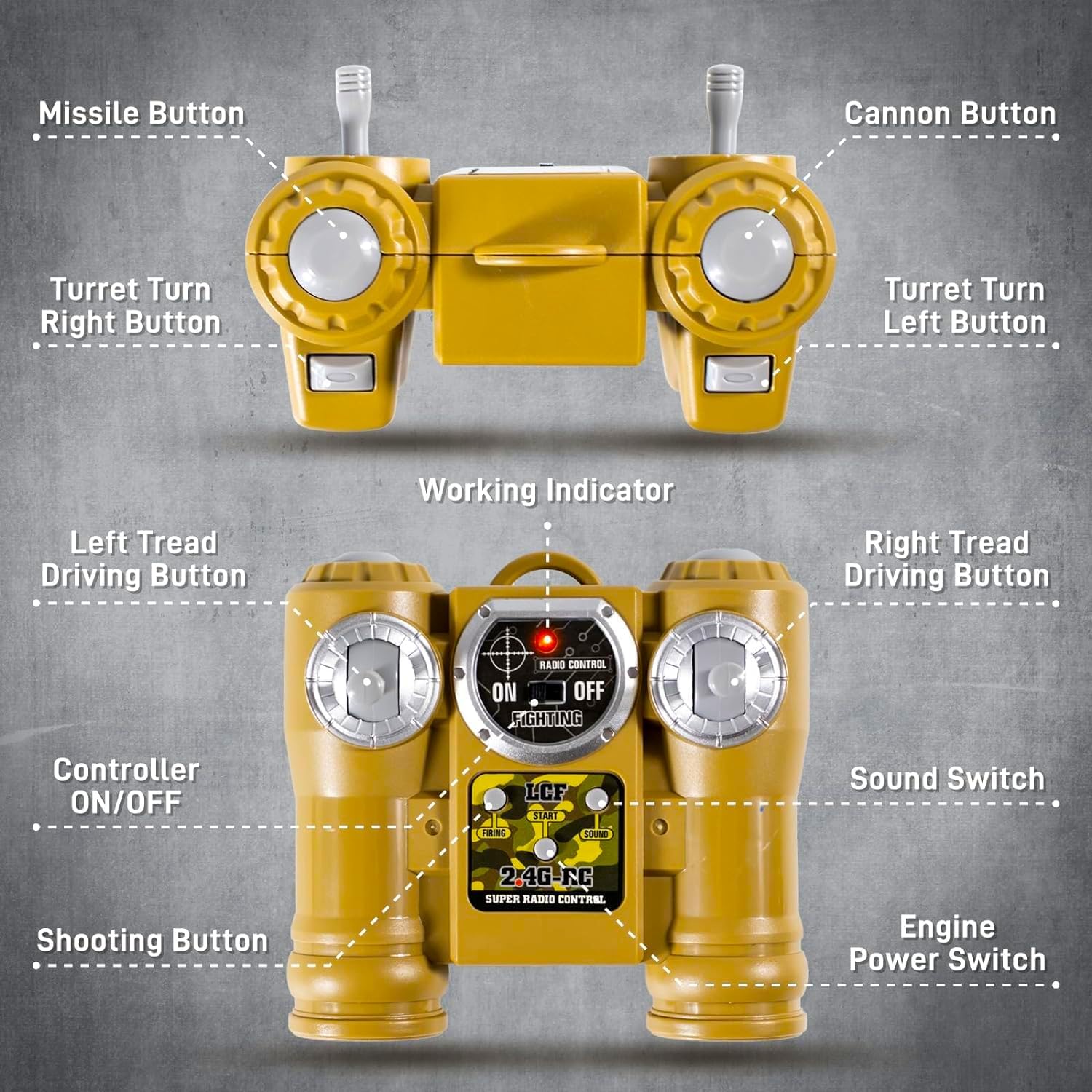 - 2.4Ghz technology allows over 10 tanks to combat fight at the same time